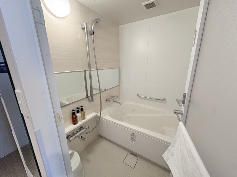 グレイスリーホテルの特徴でもあるバス・トイレセパレート。しかも広い!バスタブはしっかり足が伸ばせる広さ。これは歩き回って疲れた体を労われるわぁ。