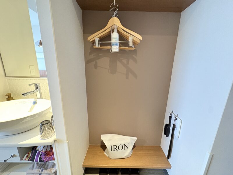 靴べらと洋服ブラシ、消臭剤はもちろん、アイロンがあったのには驚きました。