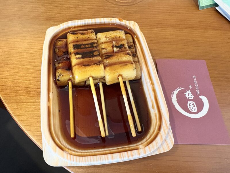 近所の梅園さんで買ってきたみたらし団子をテーブルでいただきます。