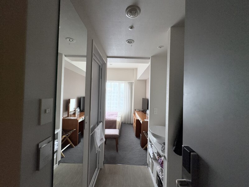 今回私たちはフロントがあった南館ではなく北館のお部屋でした。北館の1階はセブンイレブンになっていて、エレベーターホールからコンビニに出入りできるドアがあり便利です。