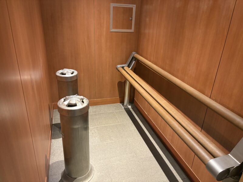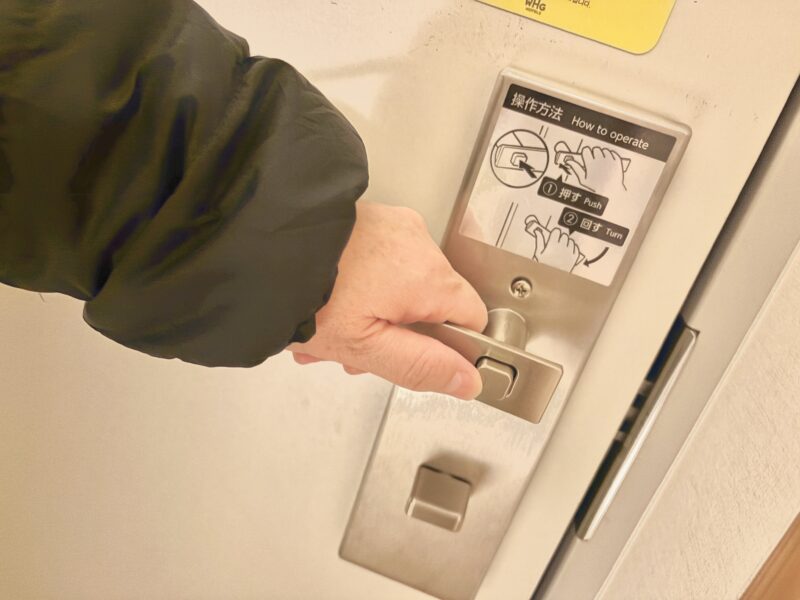 ここのドア、ドアノブについたボタンを押しながらじゃないと開きませんのでご注意ください。危うく助けを呼びそうになりました(汗)