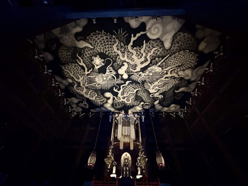 最大の見どころは、法堂の天井に描かれた圧巻の「双龍図」畳108畳分もの巨大な水墨画は、見る者を圧倒する迫力があります。