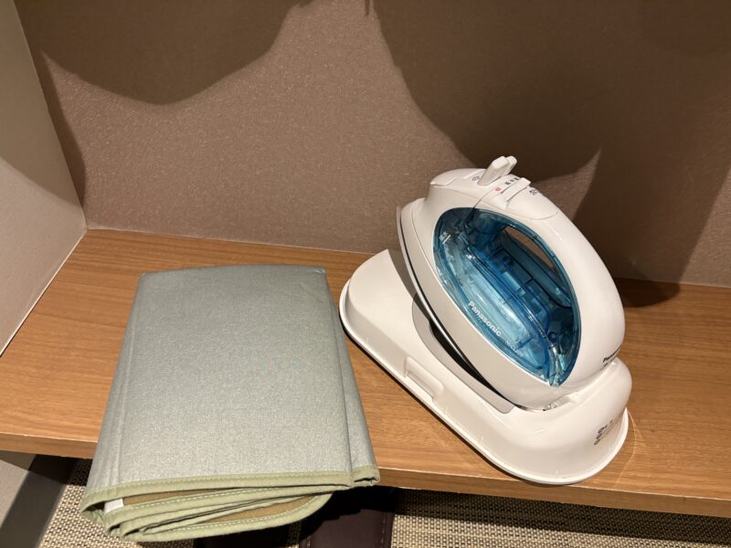 アイロンはパナソニックのワイヤレス。折り畳みのアイロン台もありました。わざわざフロントに借りに行かなくてもいいのは高ポイント。