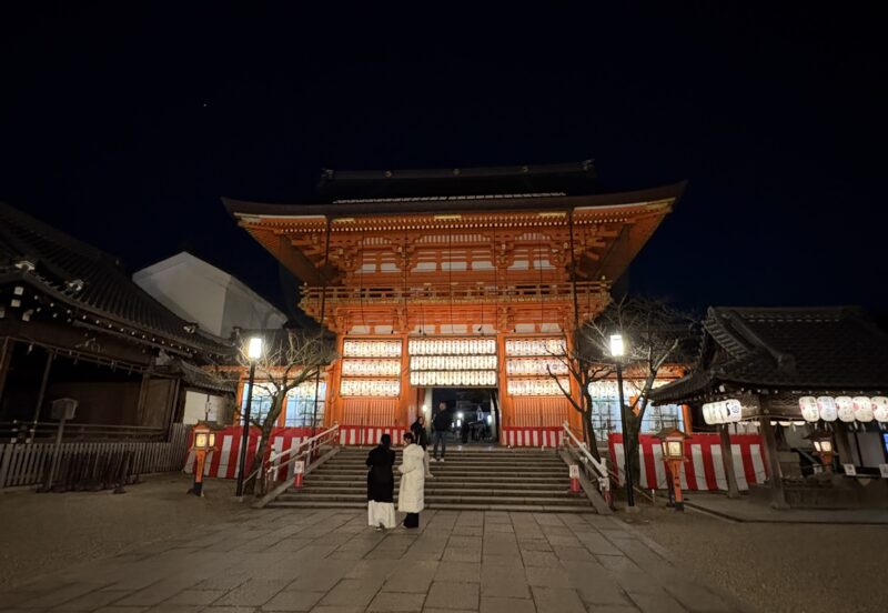 近くには縁切りで有名な「安井金比羅宮」、茶屋や料亭が並ぶ花見小路もあり見所満載