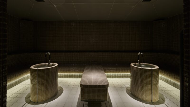 あと、びっくりしたのは大浴場。2種類ある内の一つには湯船がないのが斬新すぎました。しっかり湯船に浸かりたい人には不向きかもですが、サウナの後にいい香りのミストで全身が包まれるシャワーは感動!サウナが苦手な人にもぜひ体験してもらいたいです。
