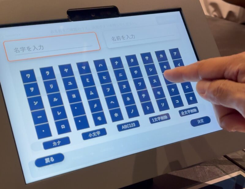 タブレットでは名前を入力して予約内容に問題がなければチェックイン完了、人数分のルームキーが発行されます。以前は顔認証キーもあったようですが、現在は廃止されていました。認識しないとかいろいろあったんでしょうね。