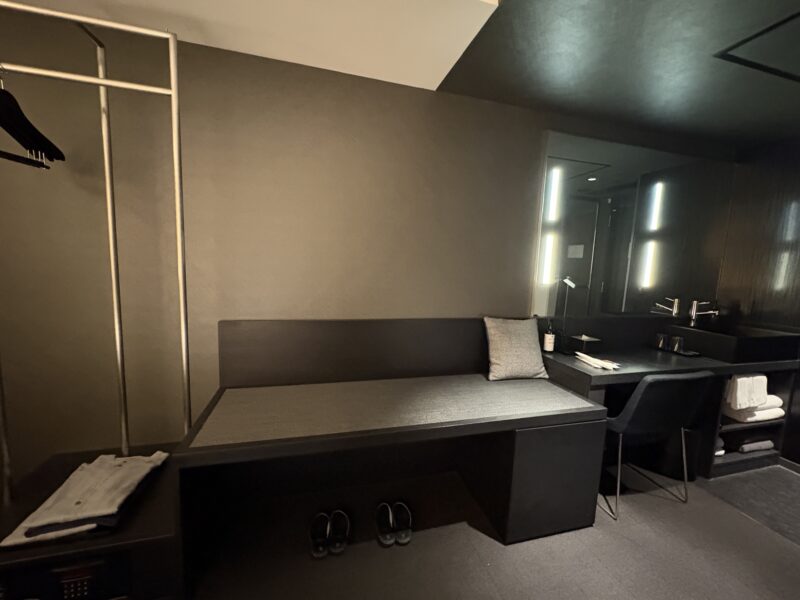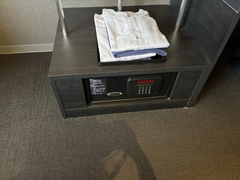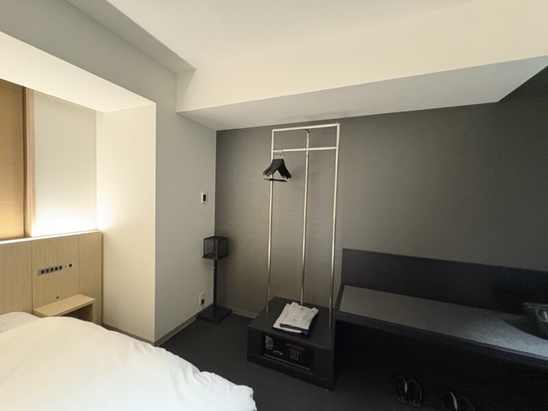クローゼットはベッドの近くに洋服かけがあります。この配置最高!カジュアルホテルではルームドア付近にクローゼットがあることが多いのですが、着替えるのはベッドの近くだったりするので動線の効率よくスムーズ。ハンガーは6つ。