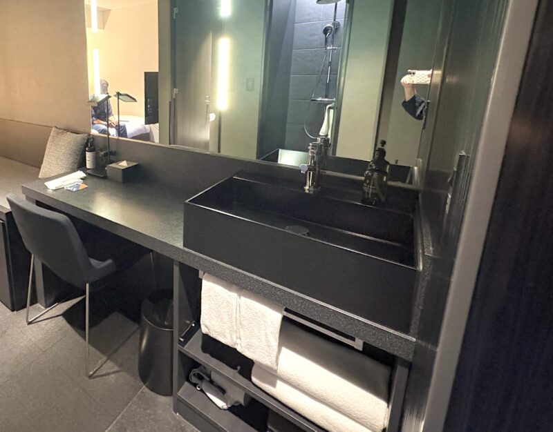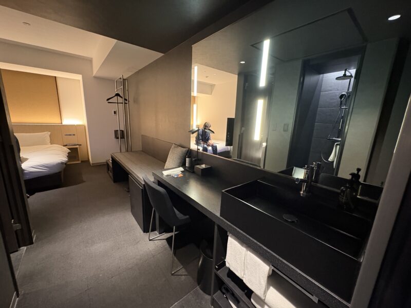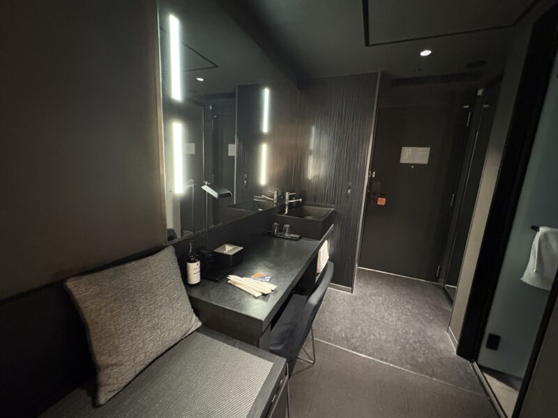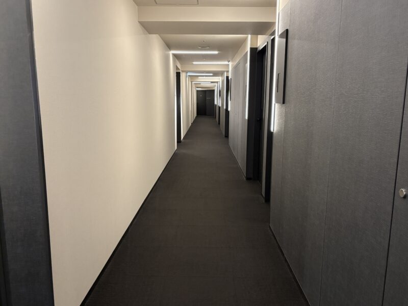今回の部屋は最上階の9階。客室フロアはモノトーンの世界。個人的には色数が多いとソワソワしてしまうモノトーン好きなのでめちゃくちゃ落ち着きます。