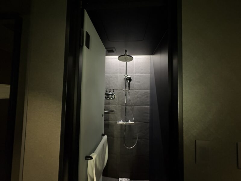 バスタブはなくシャワー室。大浴場があったので使わなかったんですが大好きなレインシャワーが付いています。