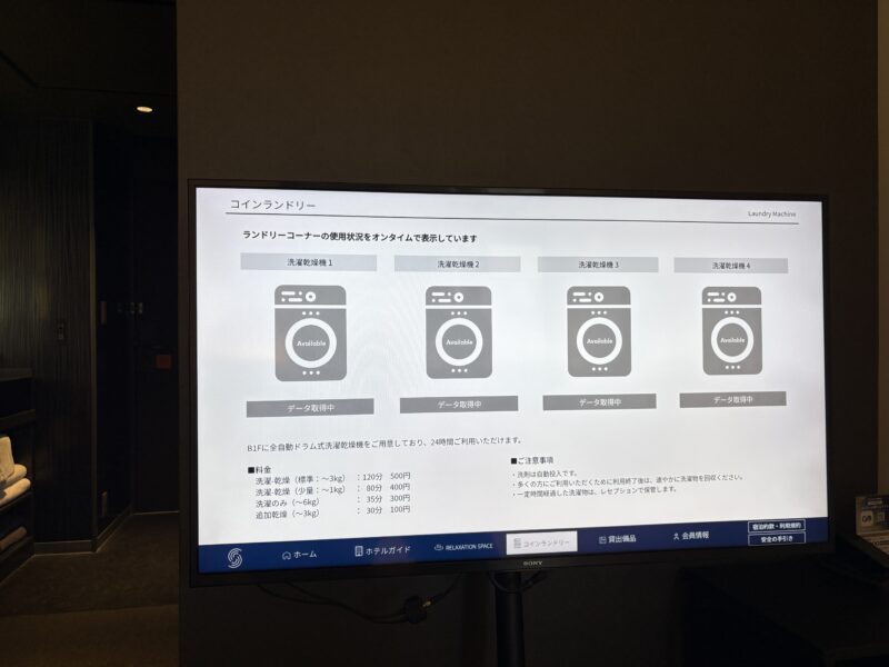 テレビではランドリーコーナーや大浴場の混み具合もチェックできるようになってました。
