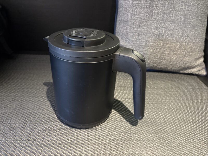 物置の下の扉の中に電気ケトルとマグカップがありました。電気ケトルはダイガーのもの。これ我が家にも同じものがあって、お湯が沸くのが早く倒してもお湯がこぼれにくいお気に入りです。