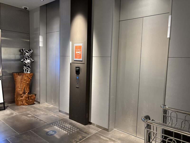 エレベーターは2基、ルームキーをかざしてエレベーターを呼ぶセキュリティ強化タイプ。『sequence KYOTO GOJO』の部屋数は208室なので数としては十分ですね。