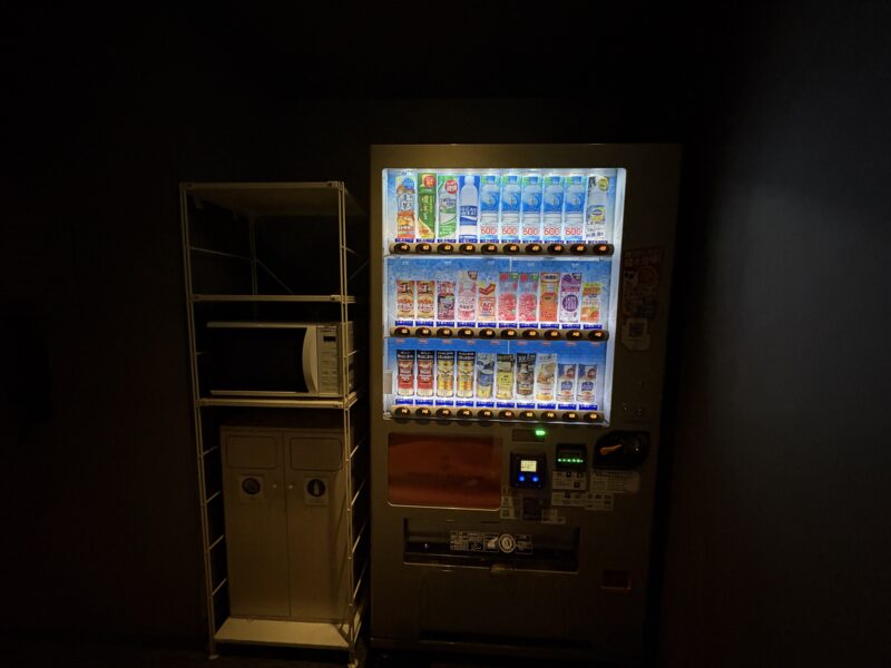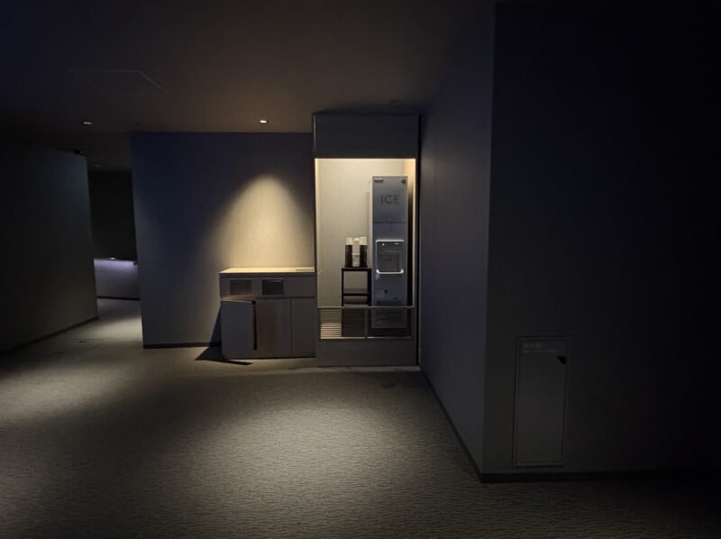 あと、見逃しがちでなのがエレベーター付近のアメニティコーナー。ここには_シャワーキャップ、綿棒、スティックタイプのお茶類があったので、必要な方はお見逃しなく。