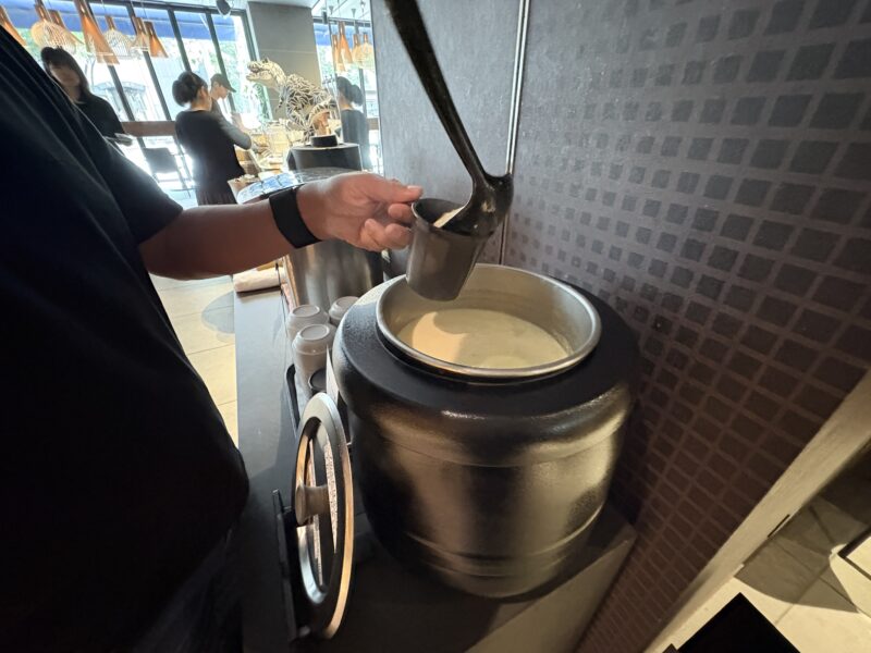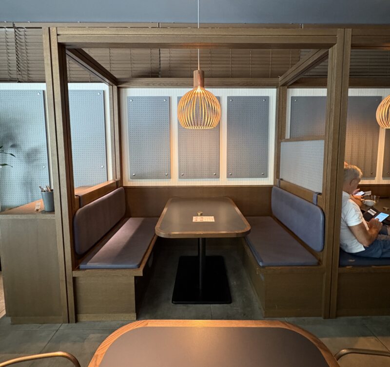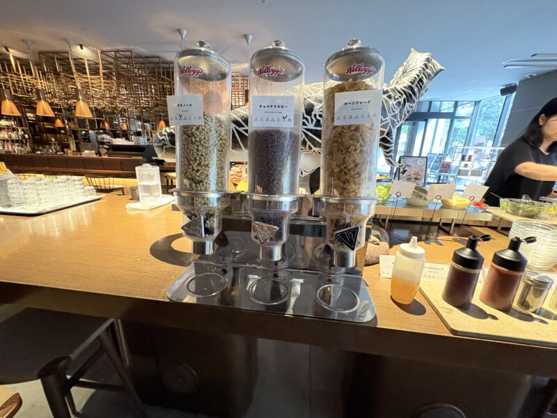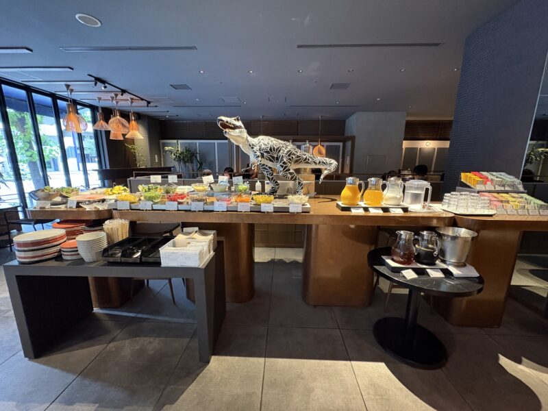 朝食は7時〜12時。昼までやってる朝食に朝一番に行ったらめちゃめちゃ空いてました。いい感じのBOX席に座れましたよ。朝食会場は1階のレストラン、ラウンジと兼用です。