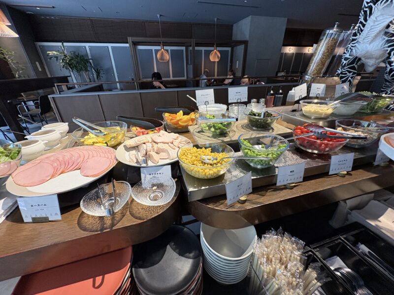 サラダ類、ロースハムや鶏ハムはビュッフェ形式で食べ放題です。