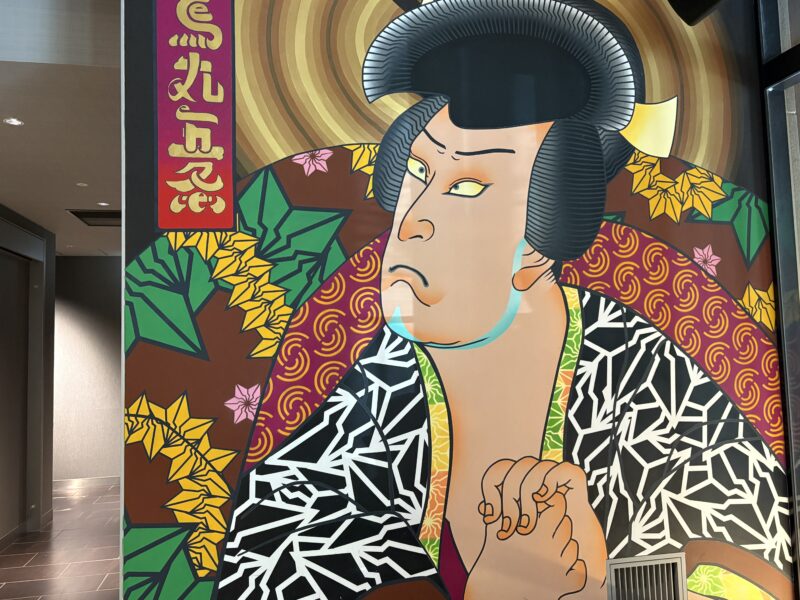 エントランスにあった歌舞伎絵。シックな館内でここだけ異彩を放っていて、海外ゲストがよく記念撮影してました。